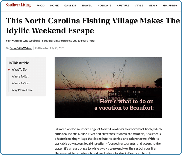 If you are planning to cover Inn on Turner or Beaufort, NC on assignment we’d be delighted to help you organize itineraries, answer questions, provide quality images to help you connect with our Coastal Community in the most authentic way!